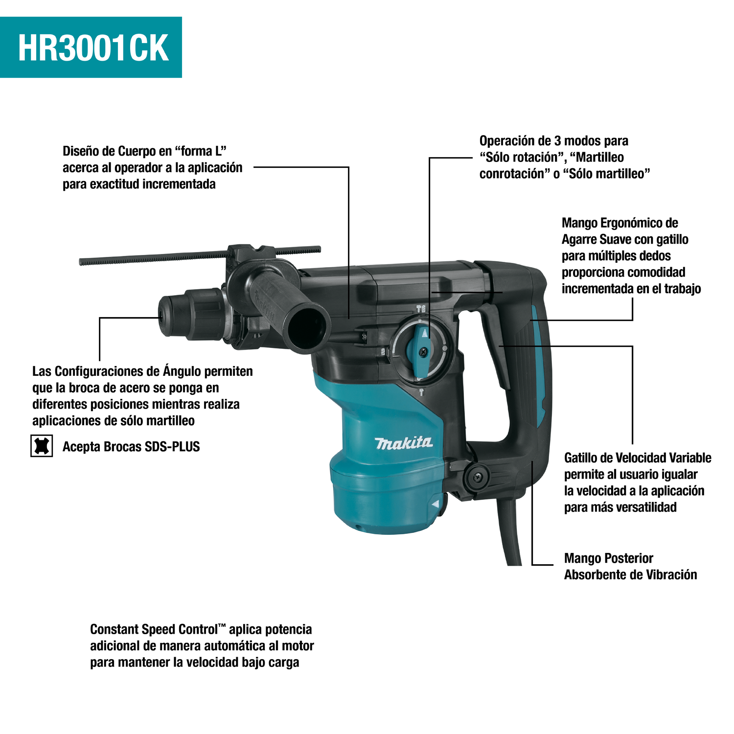 3 modos de operación para Sólo Rotación, Martilleo con Rotación o Sólo Martilleo