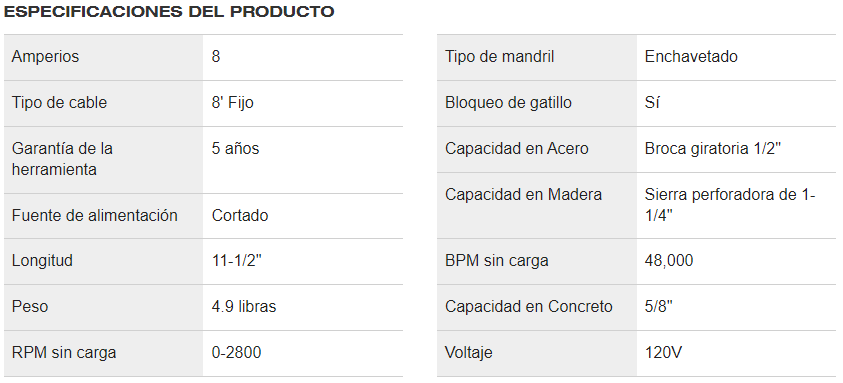 Potente motor de 8 amperios: Ofrece 0-2800 RPM y 0-48 000 BPM para un rendimiento superior