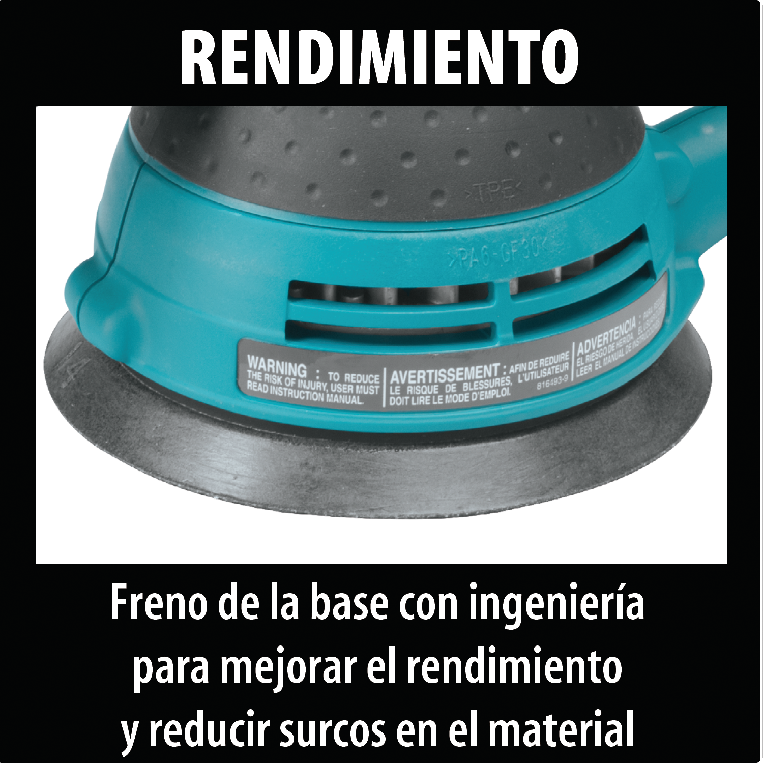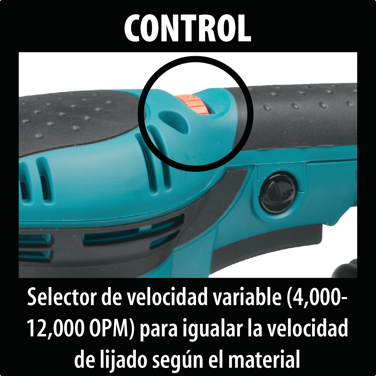 Potente motor para las aplicaciones más exigentes, ideal para lijar superficies grandes de madera, plástico y materiales metálicos, así como superficies pintadas.