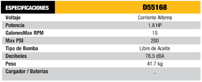 5.0 SCFM (pies cúbicos por minuto) generados a 90 PSI (libras por pulgada cuadrada) que permite una rápida recuperación