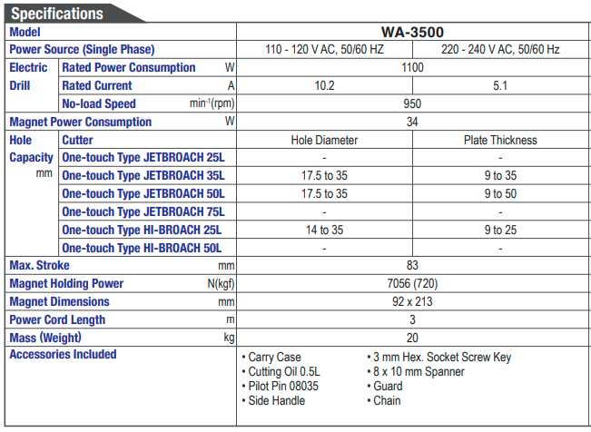 Taladro magnético semi-automático 1-3/8in x 2in de profundidad, 1,100W 950RPM