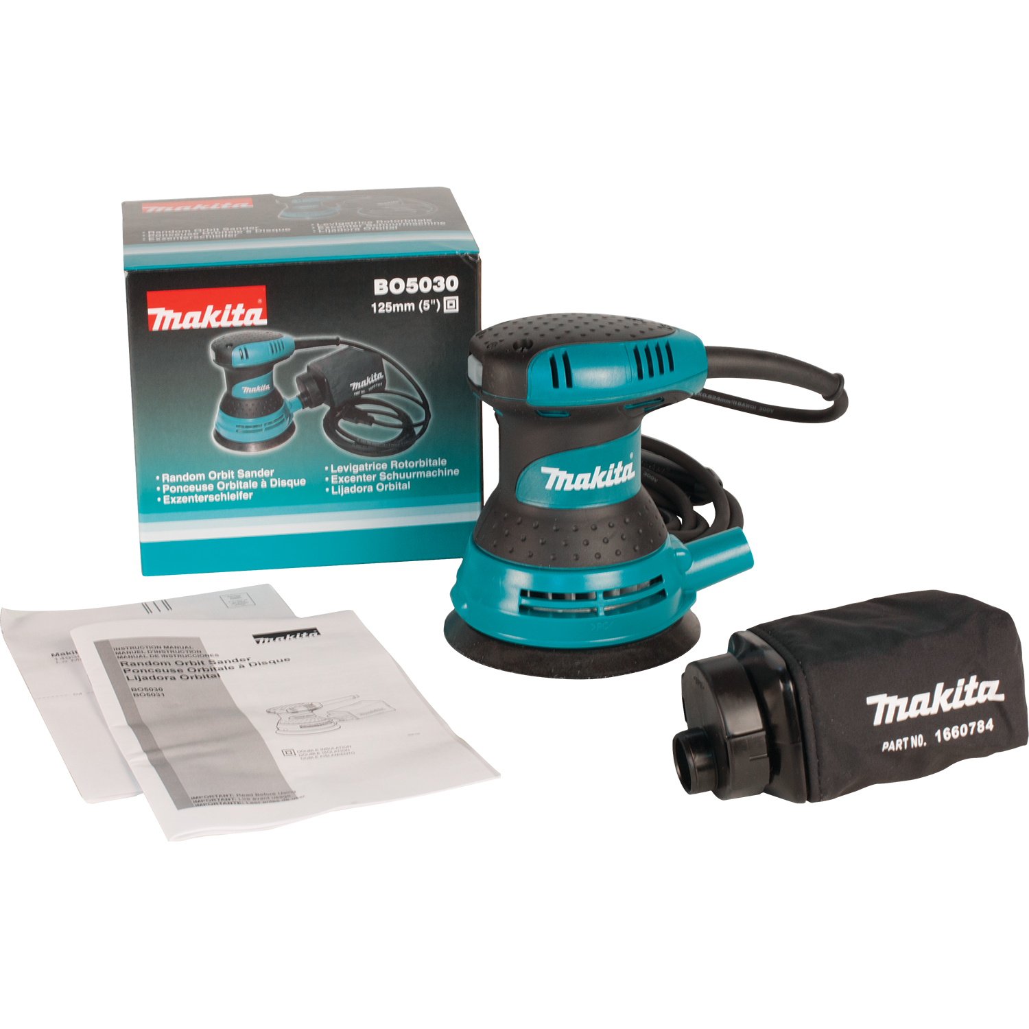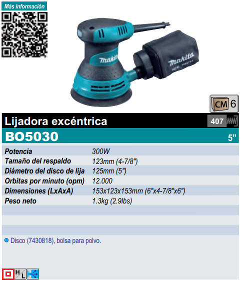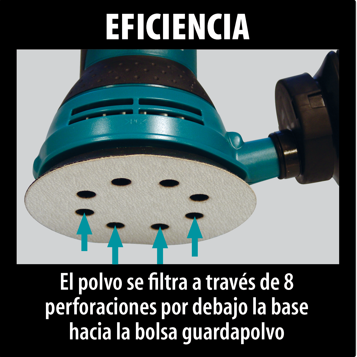 Lijadora excéntrica 5in 12000OPM c/freno bolsa p/polvo incluye lija 300W