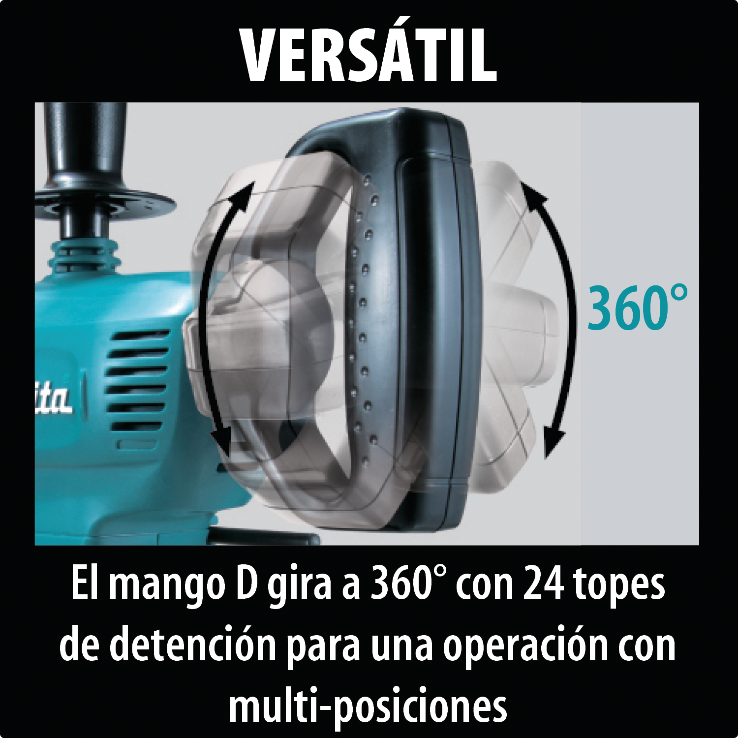 Empuñadura en forma de D totalmente rota a 360° con 24 posiciones positivas para una operación de multiposición
