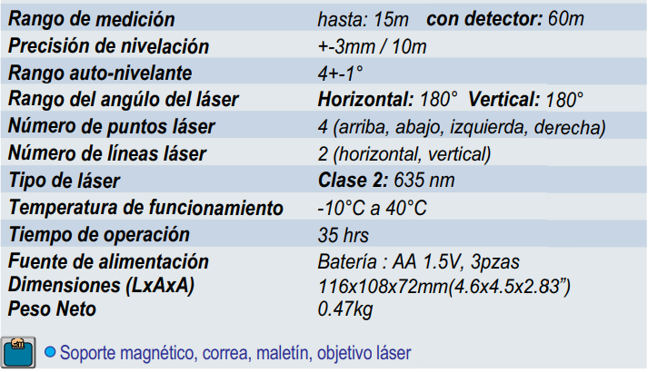 Nivelador láser vel. rotación batería AA 2 líneas cruzadas