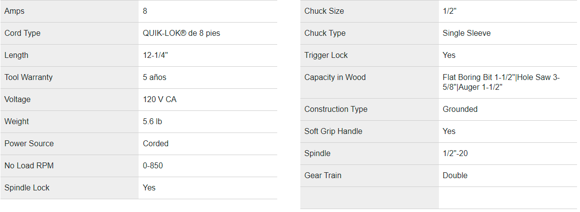Potente motor de 8.0 amperios: Ofrece hasta 850 RPM, con control de velocidad variable y reversa