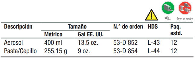 Lubricante blanco inerte, no tóxico y libre de metales que evita el atascamiento de los ensambles
