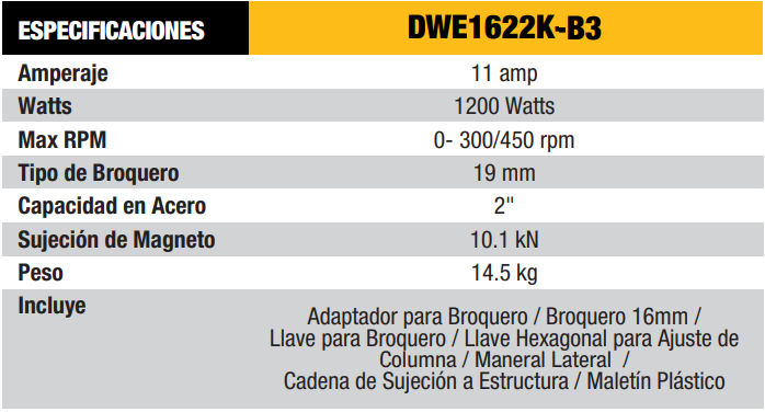 Mandril de 16mm y adaptador incluidos permite perforación con brocas rectificadas