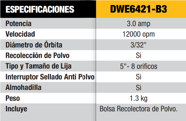 Potente motor de 275 Watts desarrolla 12000 opm que provee un lijado óptimo en maderas y metales