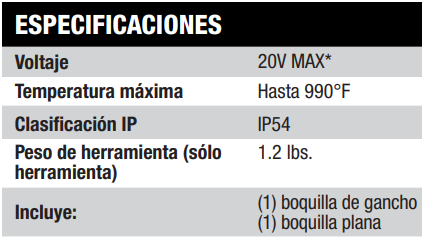 Salida de calor de tamaño universal para mayor compatibilidad con accesorios de los modelos con cables y de otras marcas. Agrega los accesorios que vienen con la herramienta