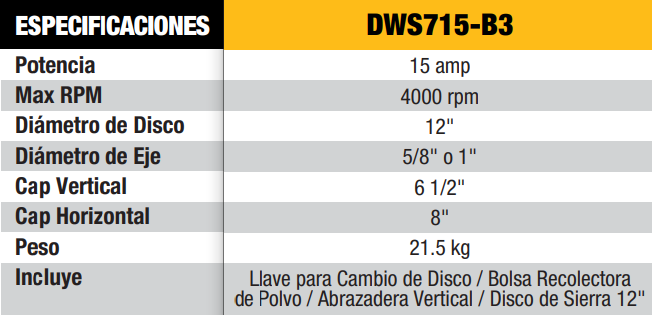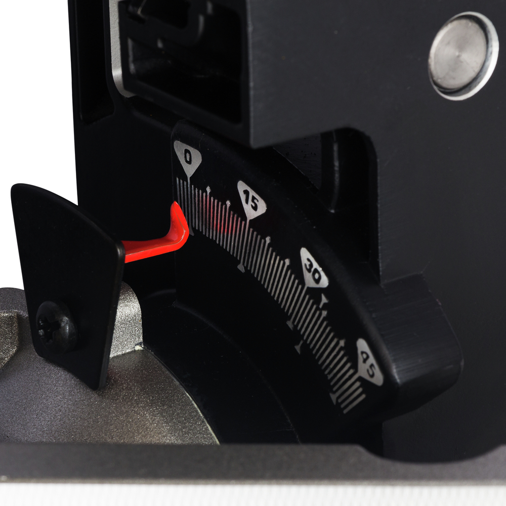 Biselado pre-seteado que se bloquea en los ángulos más comúnmente utilizados 0º, 33.9º, 45º y 48º para mayor versatilidad