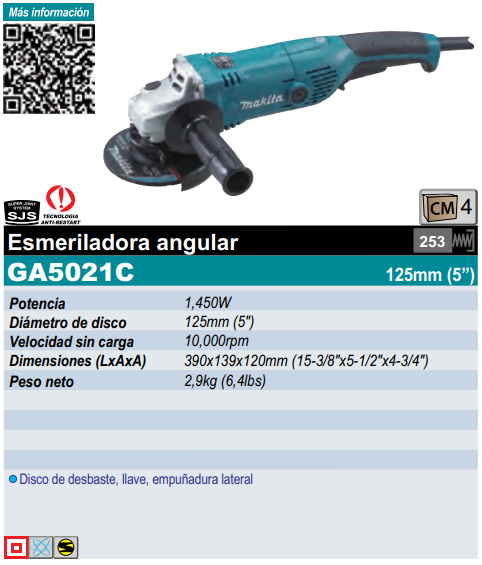 Función anti reinicio que previene un arranque accidental por seguridad incluso si la herramienta es conectada a una fuente de poder con el interruptor encendido