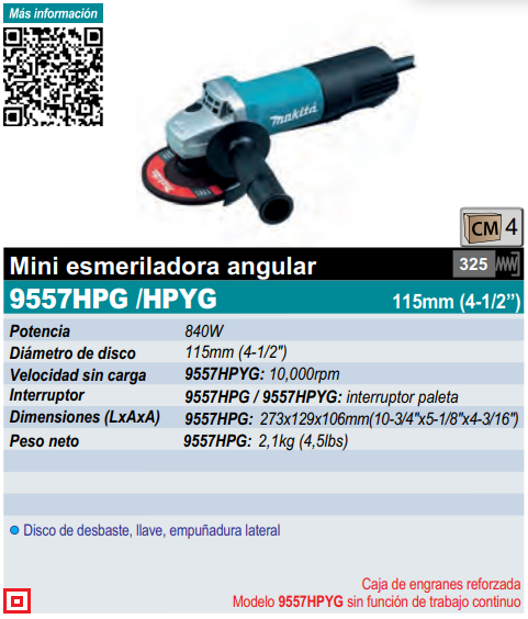 Miniesmeriladora 4-1/2in 11000RPM int. paleta 840W y 3 Discos gratis B48670