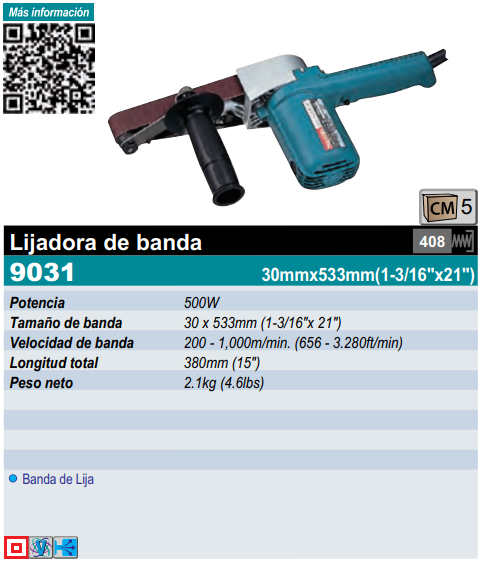 Lijadora de banda 1-3/16in x 21in VV 200-1000m/min 550W