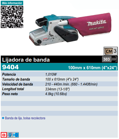 Lijadora de banda 4in x 24in 210-440m/min 1010W